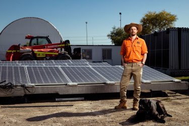 Chris McGrath, 5B co-founder and chief executive, stands in front of one of his firmâs hinged, solar arrays at a site at Kurnell on Sydneyâs south.Credit:Dominic Lorrimer